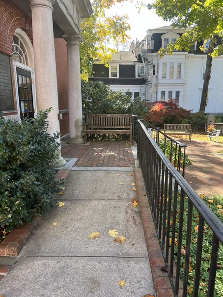 The library sits at the top of small hill. It is surrounded by old homes, a picturesque church, an art sculpture, a monument, green spaces, flowers, and trees. The library itself was built in 1869. It is Greek Revival architecture. The view from the street is impressive and welcoming. My favorite view is from the front with the old, black, very basic "LIBRARY" sign that you walk underneath to reach the front door.