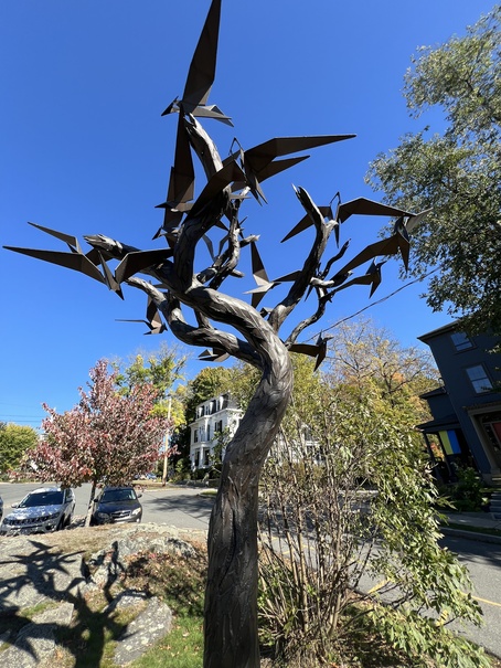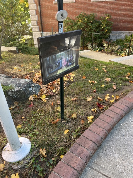 The grounds of the library, covered in autumn leaves, were also beautiful. We followed a meandering path around the perimeter of the building. There is a book story path where you walk and read the pages that are displayed at numbered reading stations.