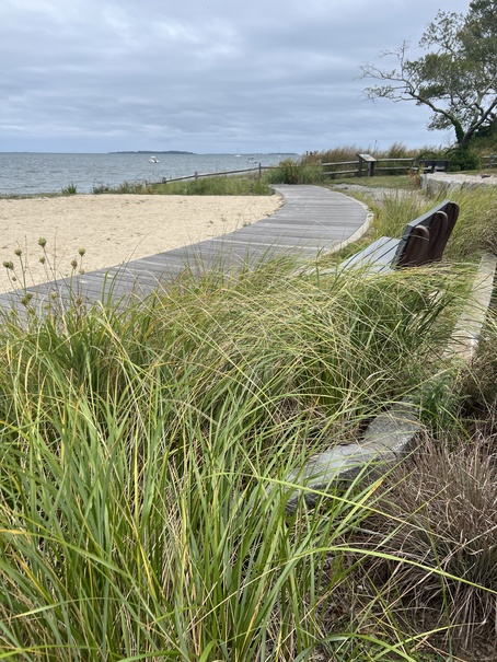 A short drive brought us to Grey's Beach Park. An ocean front park with a small beach area, children's playground, a grassy picnic area, and a pickleball court nestled in a neighborhood.