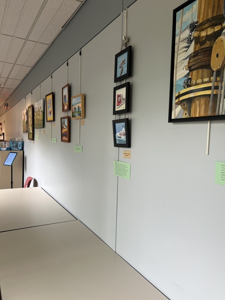 We walked down a wide hallway that serves as an art museum. The "Art Gallery" is where individual artist and groups of artists have their work displayed. They submit a request and eventually their art is hung for all to enjoy! This month's artists were from the Plymouth active Living Center. The talent displayed on the wall was amazing!!!